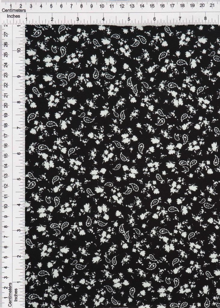 Design beautiful pieces with this soft brushed DTY knit featuring floral and paisley design with smooth texture and excellent drape. Crafted from 96% Polyester, 4% Spandex, this 58/60" wide comfortable fabric offers stretch for versatile use. Ideal for bodysuits, biker shorts, dresses, skirts, pants, and casual tops with elegant paisley floral styling.